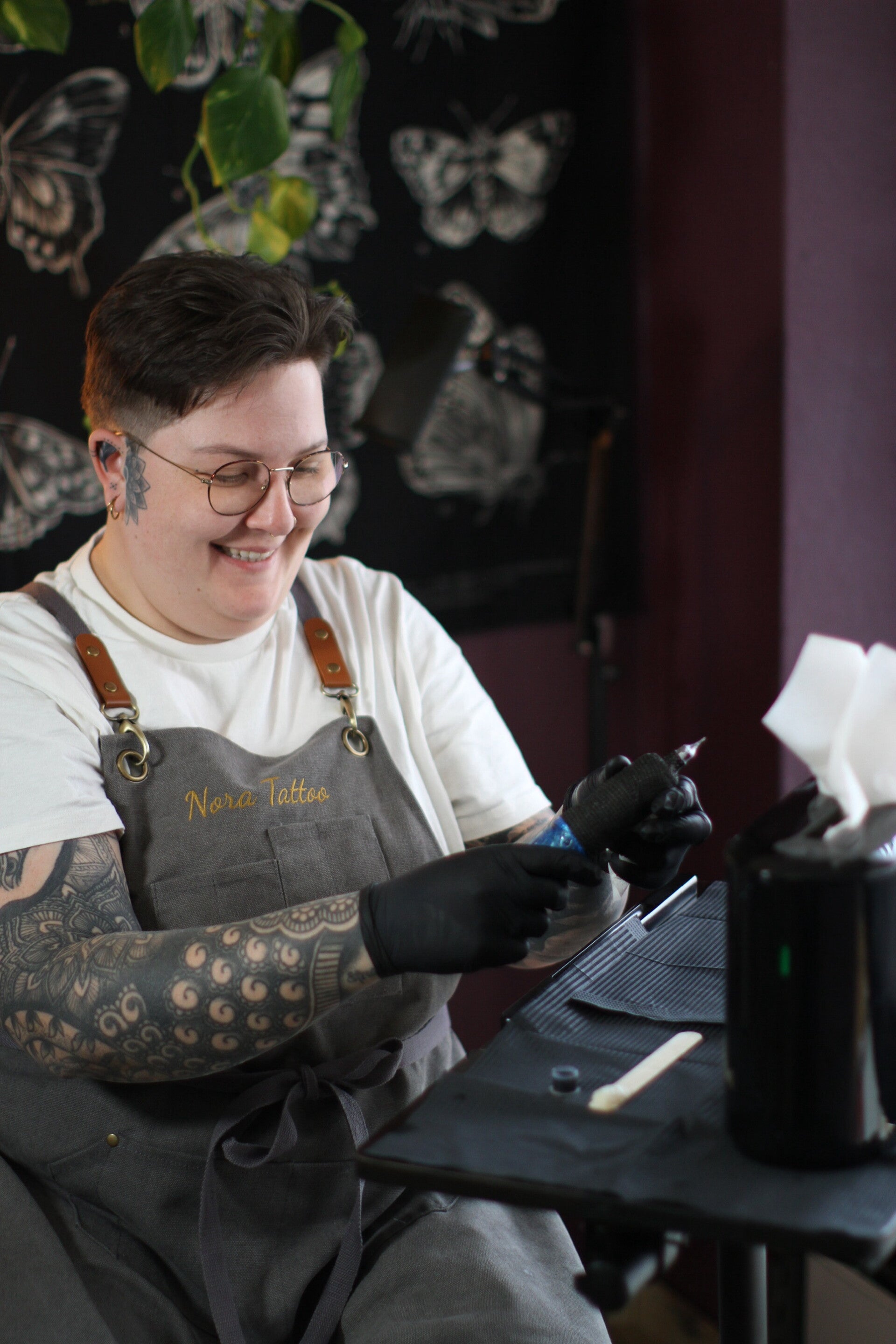Ich bin Nora, 31 Jahre alt, und seit 8 Jahren mit Leidenschaft als Tätowiererin tätig. Tätowieren ist für mich weit mehr als nur ein Beruf – es ist eine Form von Ausdruck, Vertrauen und Verbindung zwischen mir und den Menschen, die zu mir kommen. Jedes Motiv erzählt eine Geschichte, und ich empfinde es als großes Privileg, diese Geschichten unter die Haut bringen zu dürfen.